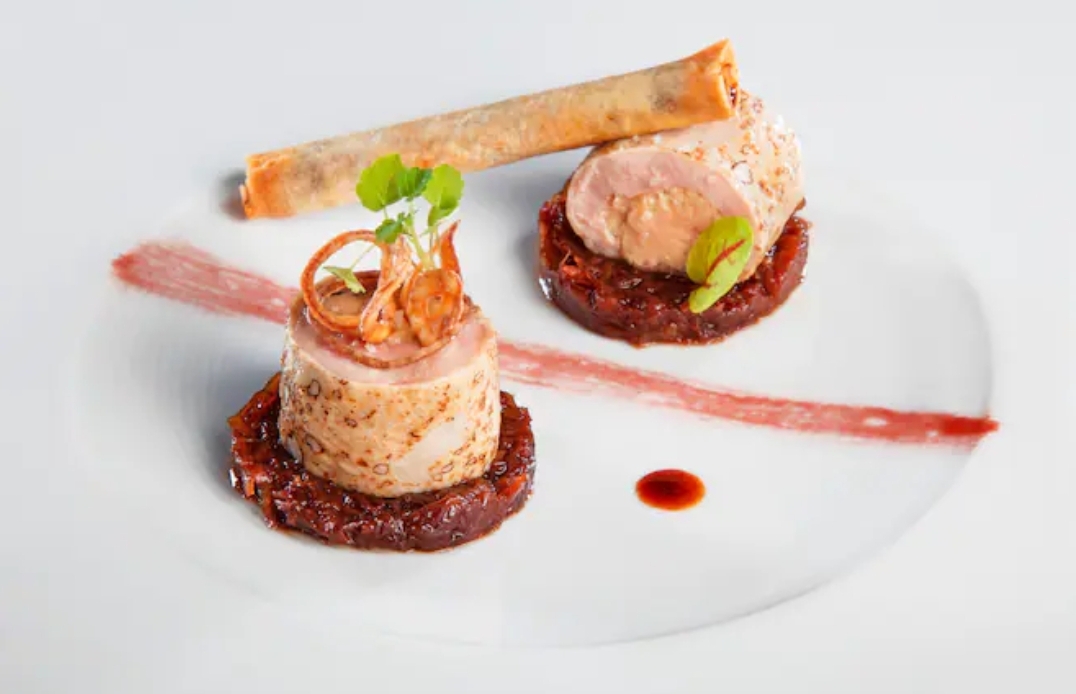 Ballotine de Poulet du Gers farci pesto rosso pignons Gratin provençal de légumes façon mornay /Sauce aubergine estragon